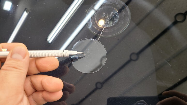 이때 유리복원전용 레진을 주입하기 위해서 구멍을 뚫지 않고 작업을 하는지 따져보셔야 합니다.