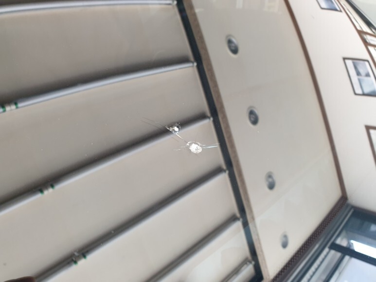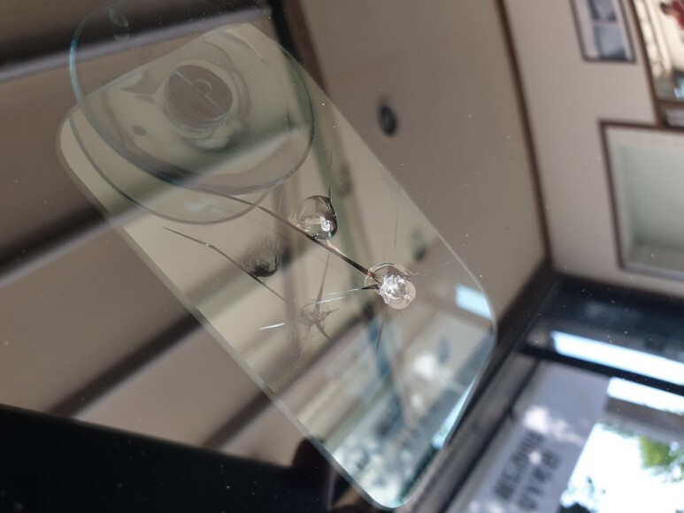 주행 중에 돌이 날아와 앞유리를 타격해서 유리가 깨졌다면