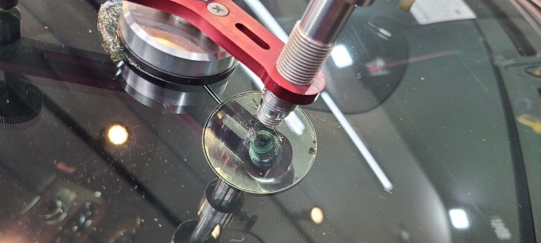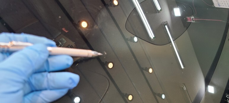 이렇게 홀타공없이 유리크랙사이에 유리접합용레진이 주입되고 나면