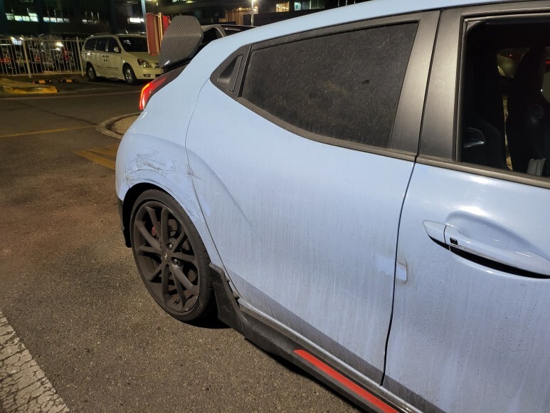리어휀다와 리어범퍼는 #인천벨로스터판금도색 으로 진행하였습니다.