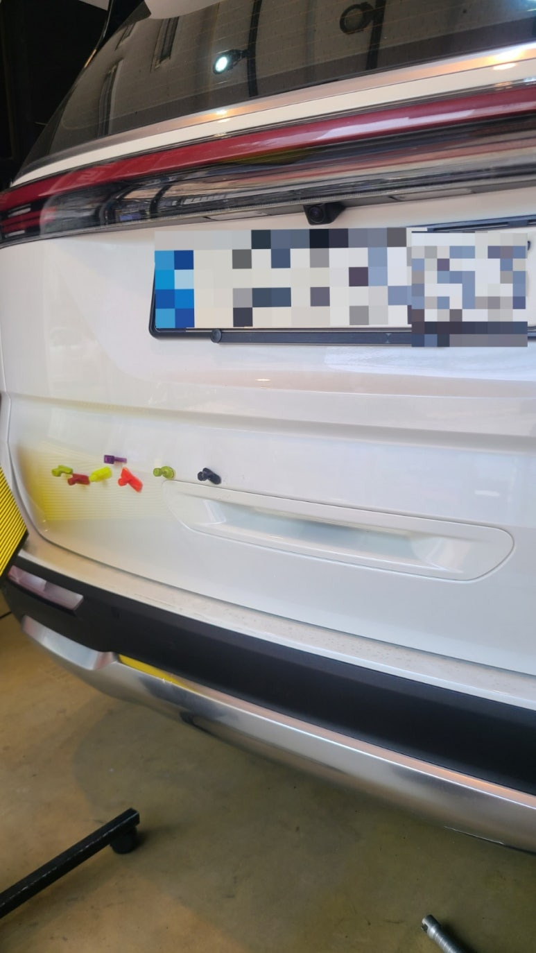 리어범퍼 쪽과 테일게이트에 손상이 생겨 입고되었습니다.