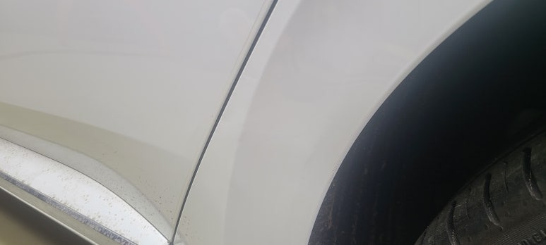 처음 입고 당시 운전석 리어도어부터 리어휀다까지 상대차량 페인트가 많이 흡착되어 있는 상태였고