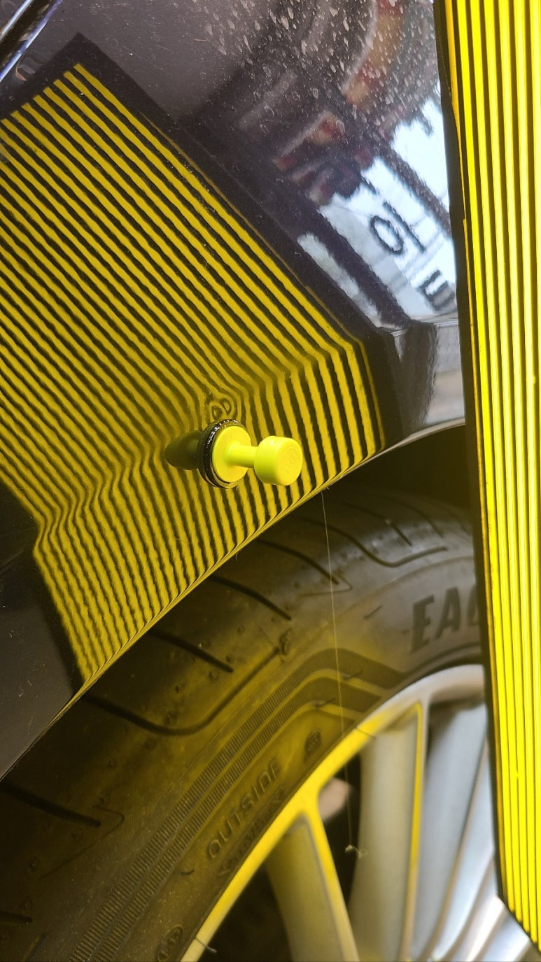 덴트기술자들은 덴트공구를 넣어서 밀어내는 방식을 선호합니다.