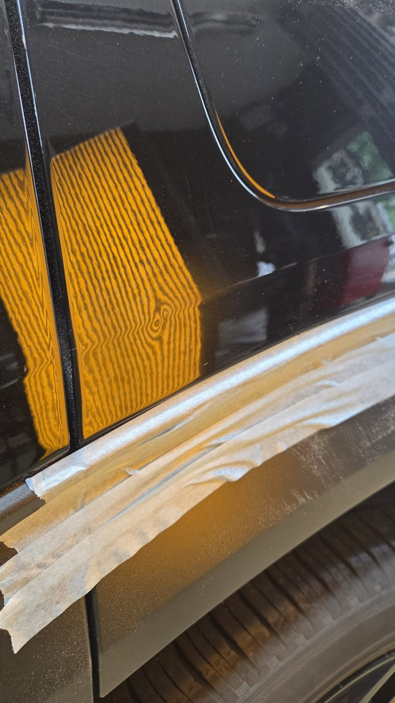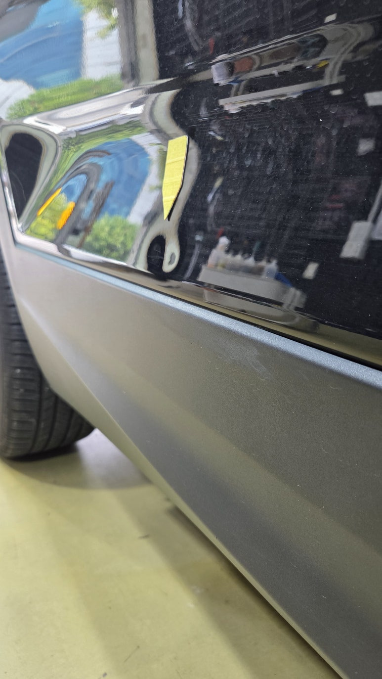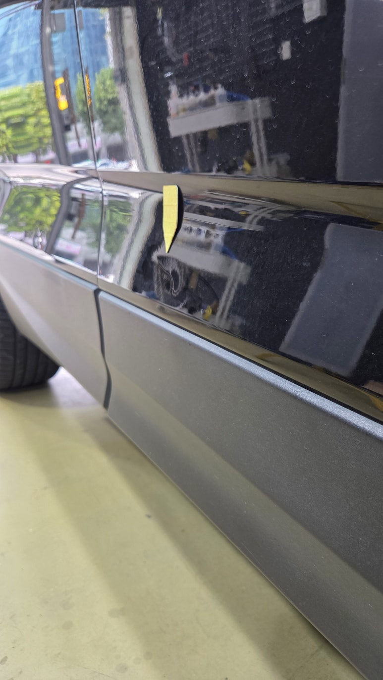 앞, 뒤 도어 하단부에 달갈만한 깊은 찌그러짐 덴트가 발생되었습니다.