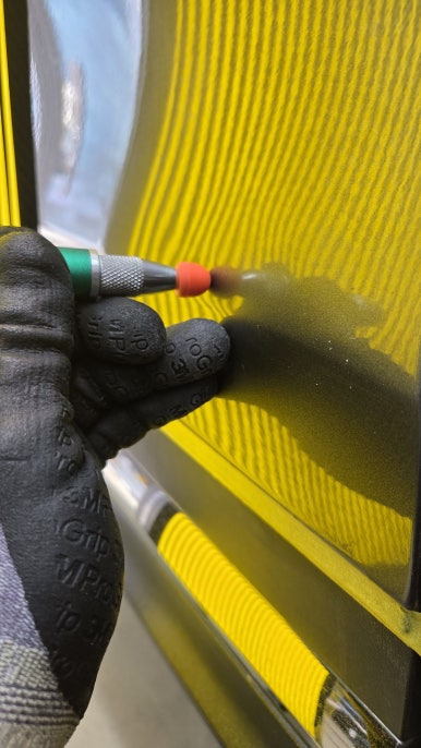 추가로 의뢰하신 운전석 앞도어에 자전거 핸들에 찍힌듯한 아주 깊은 찌그러짐