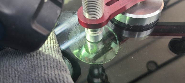 충분히 유리접합용레진을 주입하고 자외선으로 경화시킨 후 레벨링 작업을 하면 #인천유리복원 은 마무리가 됩니다.