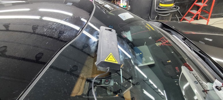 이렇게 크랙사이에 유리접합용 특수레진이 충분히 채워지고 나면 자외선 램프로 경화를 시켜줍니다.