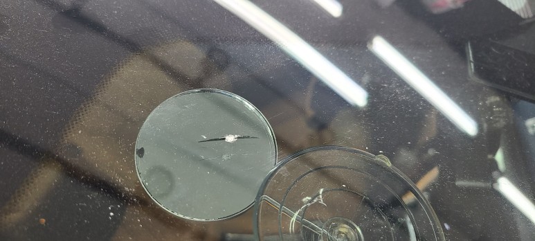 전면유리에 돌을 맞아 깨질때는 대부분 겉에 유리만 깨지고 100~500원 동전보다 작은 사이즈의 깨짐입니다.